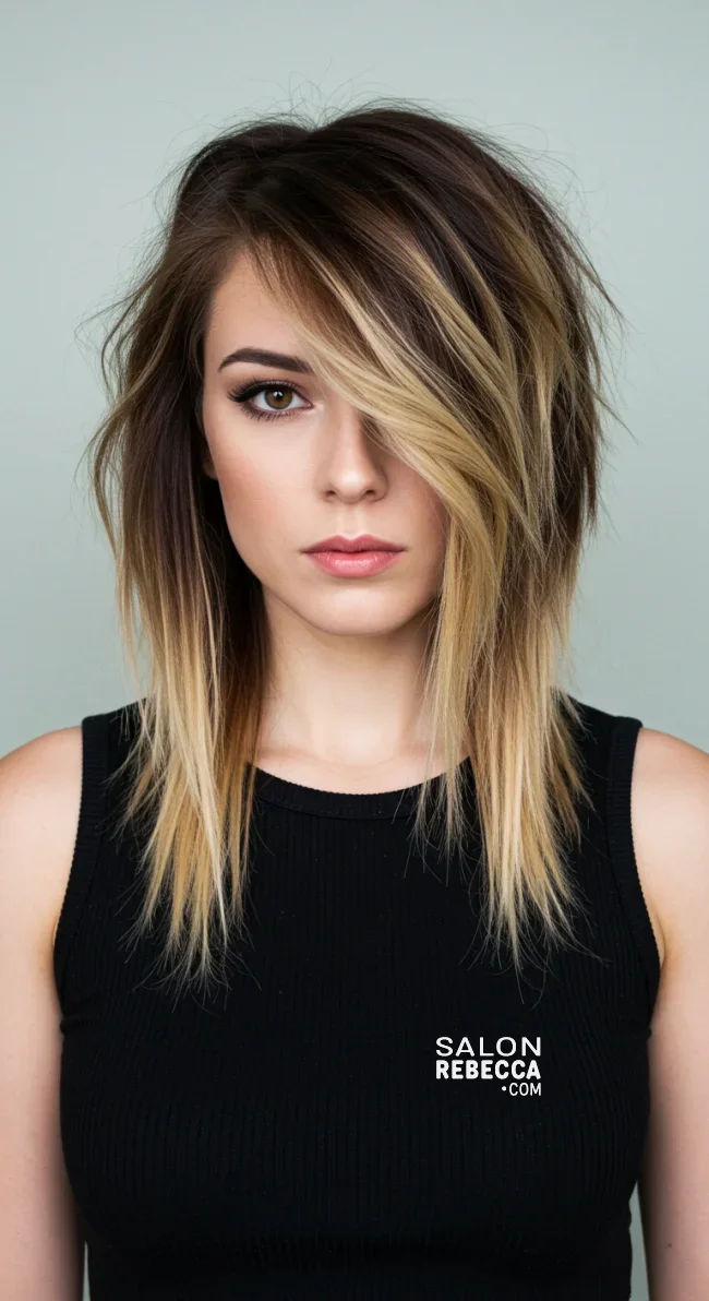 For those who prefer an edgy, contemporary look, the asymmetrical cut is a bold choice. One side is longer than the other, creating a dynamic, eye-catching style. The Cappuccino Bronde color intensifies this modern cut with a warm, artistic flair that is both daring and refined.